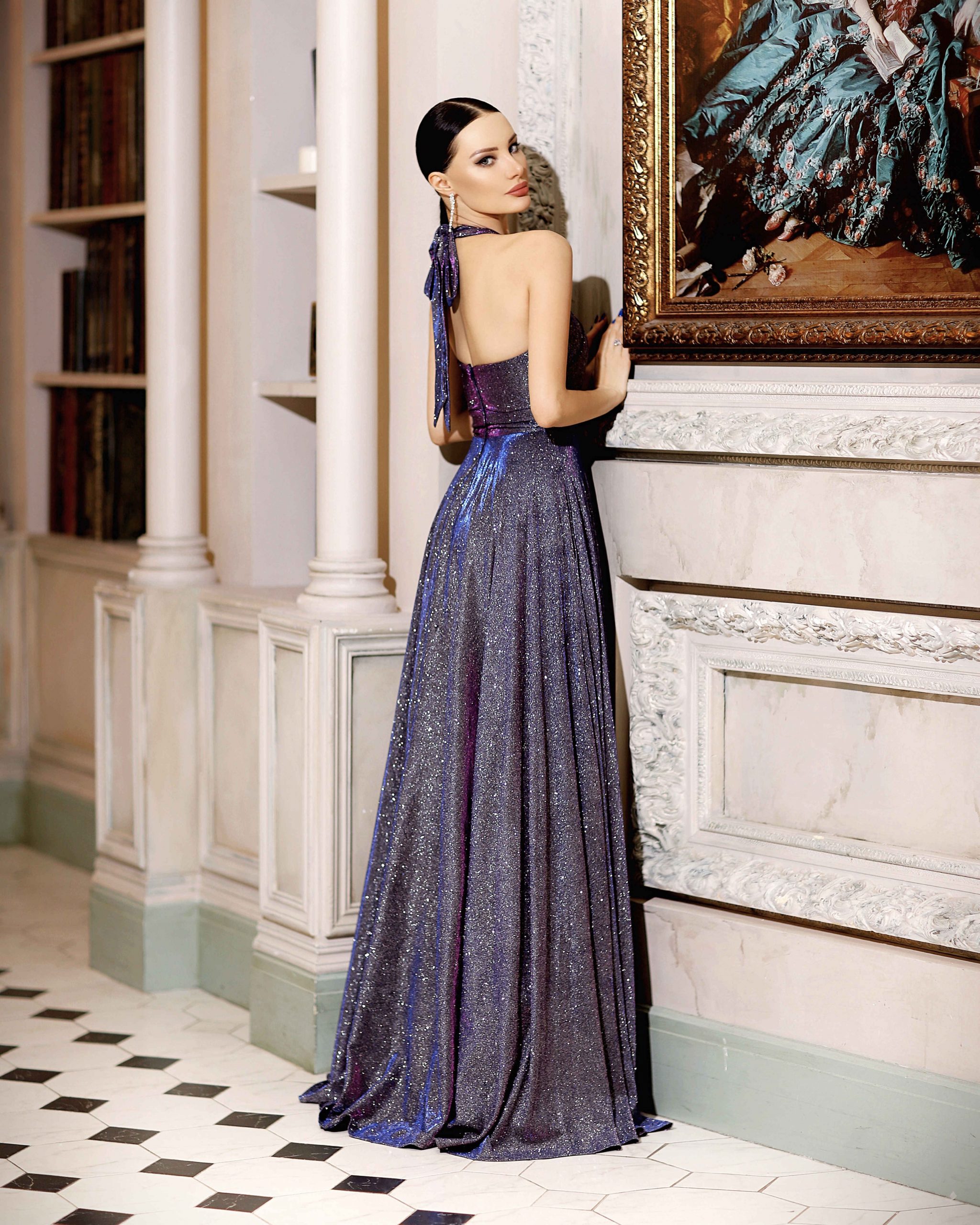 Floor length halterneck ball gown from Jadore. Stunning Sparkling Jersey featuring a fitted halter bodice with keyhole cut-out, full circle skirt & Pockets!!!